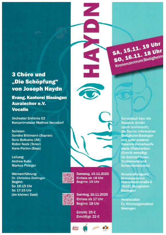 Aktuell: Joseph Haydn, die Schöpfung, 13. und 14.11.25, Kronenzentrum Bietigheim