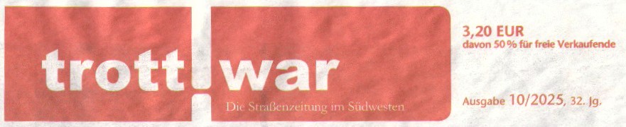 Eines geht übrigens nicht: man kann trott-war nicht abonnieren. Man muss es sich bei einem Verkäufer oder einer Verkäuferin holen und bar bezahlen. Da haben dann beide etwas davon.